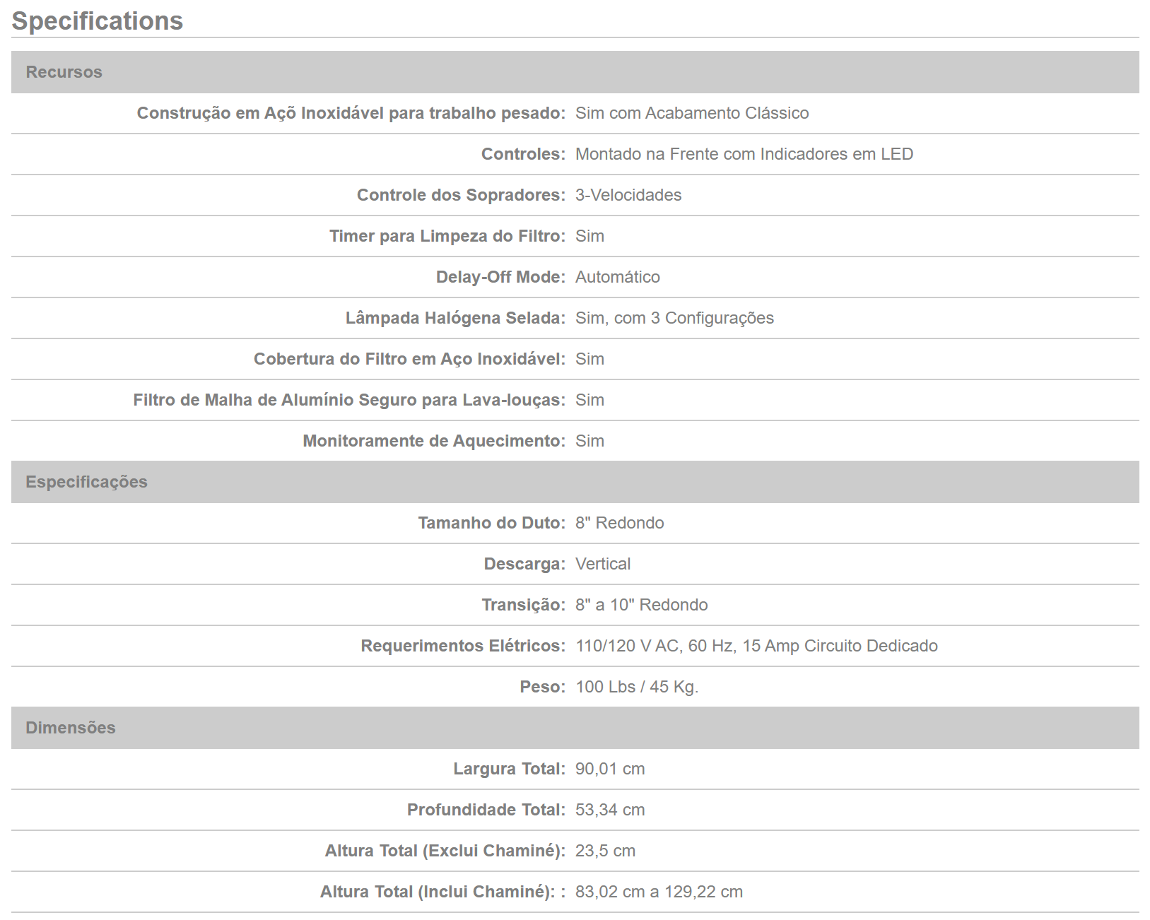 Coifa de Parede de 36″ e 1000CFM – Wolf