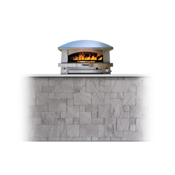 Cooks perfect Neapolitan pizzas at 800°F in just two minutes. The Countertop Artisan Fire Pizza Oven delivers the heat intensity of a wood-brick oven but with the convenience and precision of a gas flame.