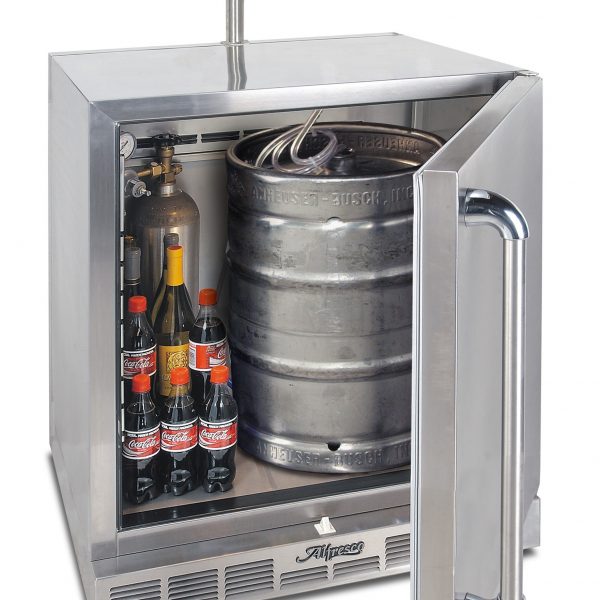 Acessório opcional desenvolvido para ser instalado embutido na parte traseira do Refrigerador Alfresco (URS-1XE). O Kit Chopeira inclui uma torre em aço inoxidável com bica, um tanque de CO2, mangueiras de fácil conexão e remoção, medidores de pressão e uma bandeja coletora com grade anti-respingo.
