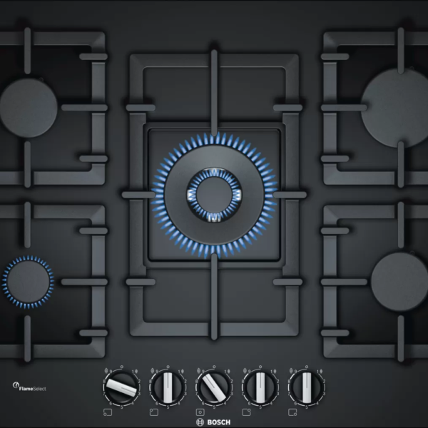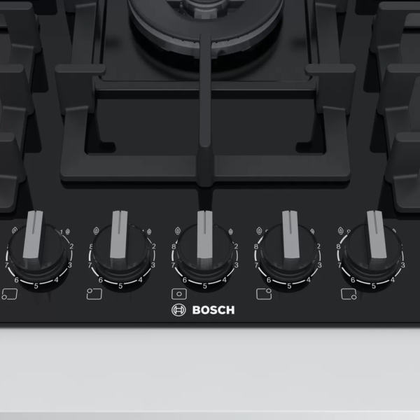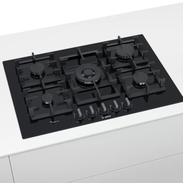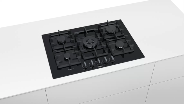 75cm Series 6 Gas Hob with Integrated Controls, Hard Glass, and 5 Burners – Black